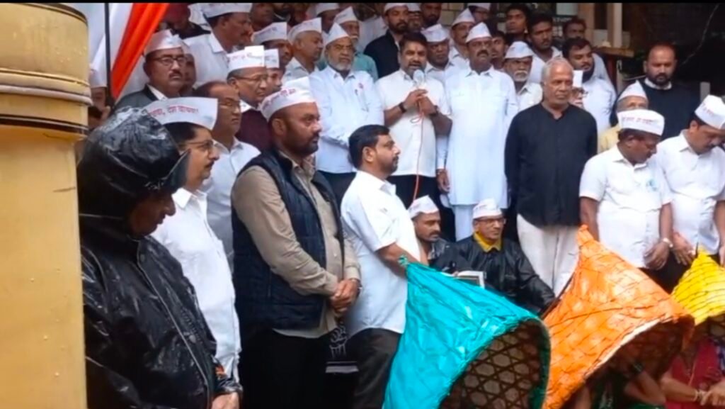 सरकारने डोळ्यावर पट्टी बांधलेली असून ही  सरकारच्या डोळ्यावरची पट्टी काढायचं काम आम्हाला करावं लागणार आहे. असा घनाघात आमदार सतेज पाटील यांनी केला. शक्तीपीठ महामार्गाला विरोध करण्यासाठी एकवटलेल्या बळीराजाला संबोधित करताना ते बोलत होते. याअगोदर कोणत्याही प्रकल्पाना विरोध झालेला नाही. मात्र शक्तिपीठ महामार्ग हा केवळ ठेकेदार आणि भांडवलदार यांना पोसण्यासाठी होत असल्यामुळे याला आमचा विरोध आहे. असे आमदार पाटील म्हणाले.