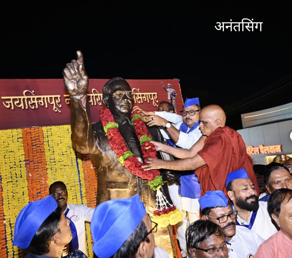 गेल्या ५० वर्षापासून भीमसैनिकांचे स्वप्न असलेले डॉ.बाबासाहेब आंबेडकर यांच्या पूर्णाकृती पुतळ्याचे जयसिंगपूर नगरीमध्ये जंगी स्वागत करण्यात आले. शहरातील प्रमुख मार्गावर निळे झेंडे, जेसीबीच्या सहाय्याने फुलांचा वर्षाव, भव्य आतषबाजी, साखरपेड्यांचे वाटत करीत डॉ. बाबासाहेब आंबेडकर यांच्या जयघोषाने हजारो भीमसैनिक या ऐतिहासिक क्षणाचे साक्षीदार ठरले. आमदार राजेंद्र पाटील यड्रावकर यांनी दिलेला शब्द पाळून जयसिंगपूर शहरात ‘ना भूतो ना भविष्यतो’ असा आगमन सोहळा संपन्न झाला.
