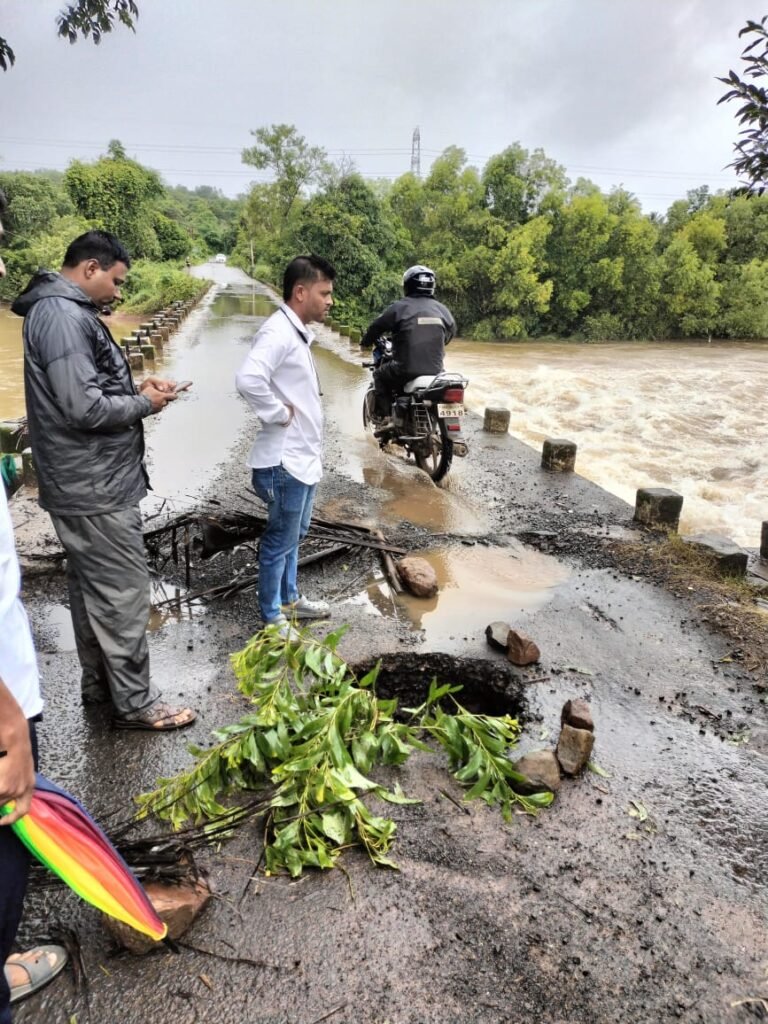 आजरा -हाजगोळी बंधाऱ्यावरील स्लॅबच्या लोखंडी सळ्या दिसत होत्या, त्यावेळीच जर दुरुस्ती झाली असती तर आज ही परिस्थिती ओढावली नसती.अशी खंत व्यक्त करीत एकते दीड महिना उलटून गेला तरीही बंधाऱ्याची दुरुस्ती अथवा डागडुगी झालेली नाही,कि याकडे कोणीही गांभीर्याने पाहिले नाही असा आरोप करून बंधाऱ्यांवर मोठा खड्डा पडला असल्यामुळे तेथील वाहतूक तात्पुरती बंद असून बंधाऱ्याच्या दोन्ही बाजूस संरक्षक रोलिंग बसवून उंची वाढवावी अशी मागणी डॉ.रोहन जाधव यांनी केली.भगदाड मुजवून तात्पुरती मलमपट्टी करण्यापेक्षा या ठिकाणी कायम स्वरूपी उपाय योजना आखावी असेही त्यांनी सांगितले.