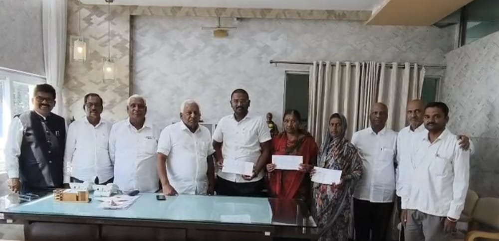 विमा प्रतिनिधी ऋषिकेश पाटील , इतर मान्यवर संचालकांच्या उपस्थितीत चेक प्रदान करण्यात आले.