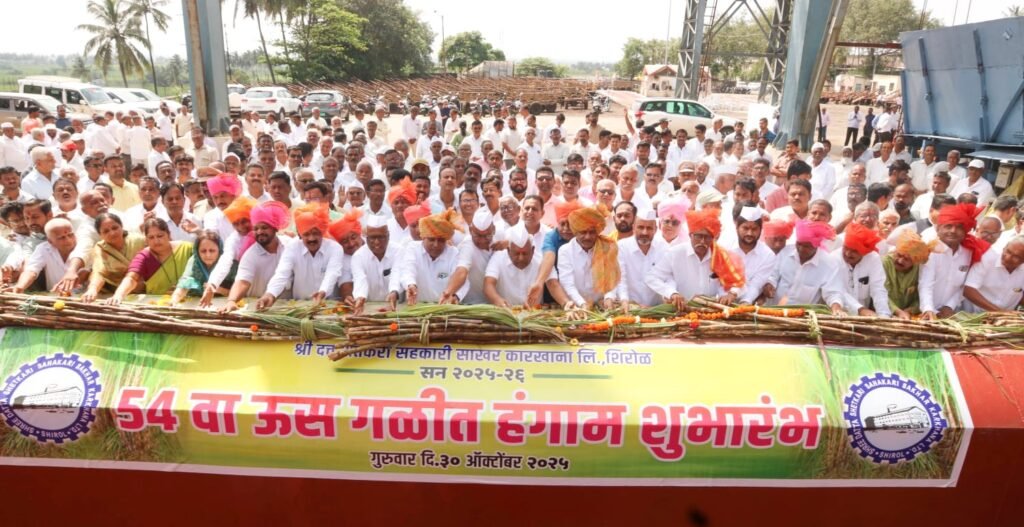 श्री दत्त-शिरोळ कारखान्याच्या सन २०२५-२०२६ च्या ५४ व्या ऊस गळीत हंगामाचा शुभारंभ कारखान्याचे मार्गदर्शक संचालक, उद्यानपंडीत गणपतराव पाटील यांच्या शुभहस्ते सकाळी ११.४५ वाजता संपन्न झाला. तत्पूर्वी सकाळी ११-०० वाजता कारखान्याचे सर्व संचालक मंडळ व मान्यवरांच्या शुभहस्ते काटापूजन करण्यात आले.