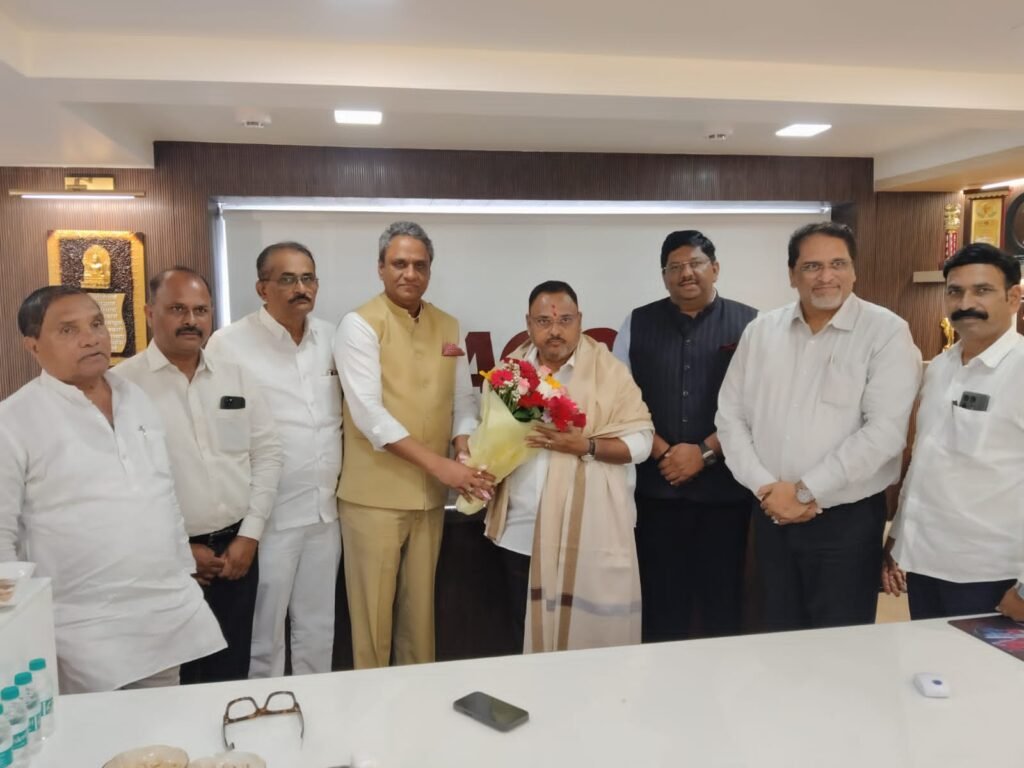 मुंबई येथील महाराष्ट्र चेंबर्स ऑफ कॉमर्स इंडस्ट्रीज एग्रीकल्चर च्या कार्यालयाला आमदार राजेंद्र पाटील यड्रावकर यांनी भेट देऊन अध्यक्ष रविंद्र माणगावे यांच्याशी चर्चा केली. या भेटीदरम्यान राज्याच्या व्यापार, शेती आणि वस्त्रोद्योग क्षेत्राशी संबंधित महत्त्वाच्या विषयांवर सविस्तर चर्चा करण्यात आली.