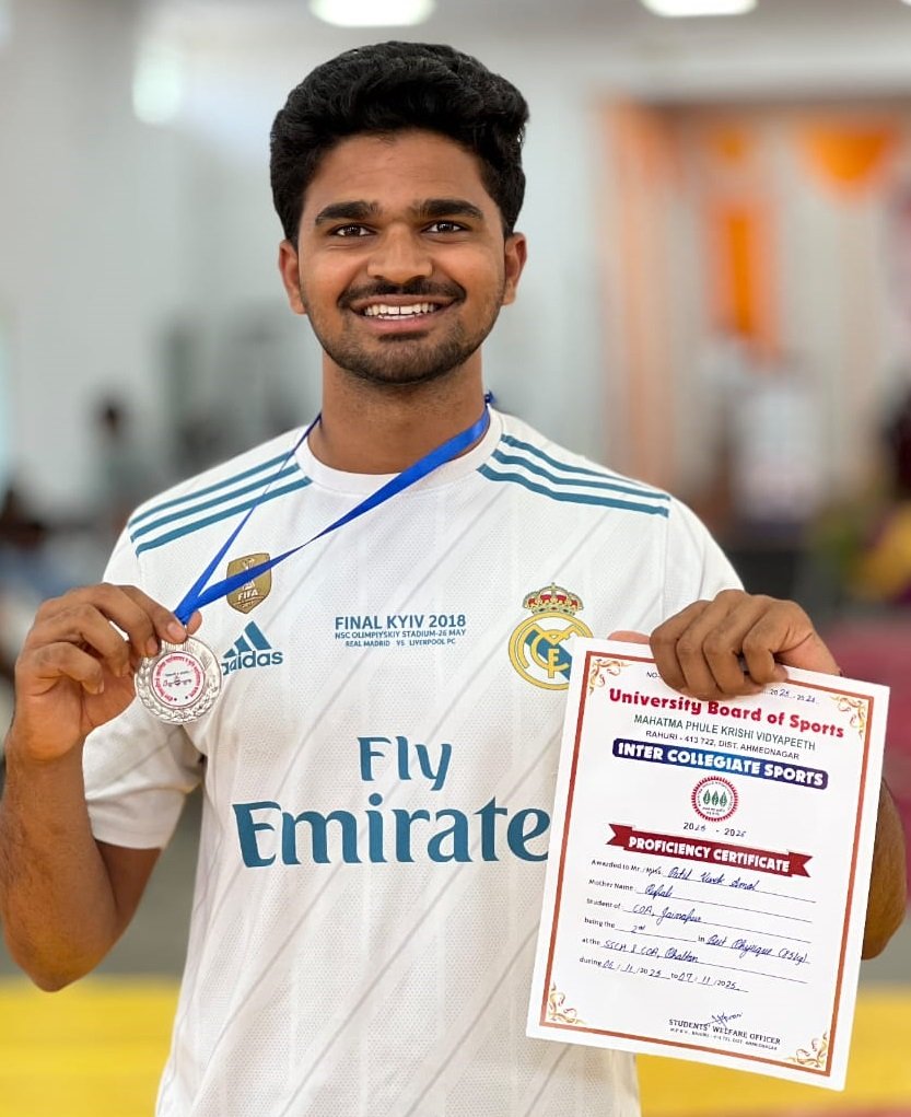 जैनापूर येथील शरद कृषी महाविद्यालयाचा विद्यार्थी शुभम दीपक चव्हाण याने आंतर महाविद्यालयीन वेटलिफ्टिंग या स्पर्धेत ६९ किलो वजन गटमध्ये १९५ किलो वजन उचलून सुवर्णपदक पटकावले आहे. त्याची विद्यापीठ संघामध्ये निवड झाली आहे. तसेच विवेक अमोल पाटील याने बॉडी बिल्डिंग स्पर्धेत ८५ किलो वजनी गटामध्ये रौप्यपदक पटकावले आहे.