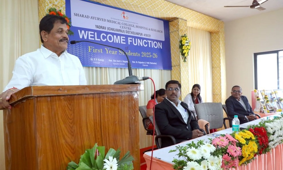 “आयुर्वेद ही भारताने संपूर्ण जगाला दिलेली एक अमूल्य आणि महान देणगी आहे. शरद आयुर्वेदिक मेडिकल कॉलेजमधून बाहेर पडणारा प्रत्येक विद्यार्थी केवळ पदवीधारक न राहता, समाजात एक उत्तम ‘धन्वंतरी’ म्हणून ओळखला जावा, असे शिक्षण देण्याचा आमचा संकल्प आहे,” असे प्रतिपादन शरद इन्स्टिट्युट ऑफ टेक्नॉलॉजीचे एक्झिक्युटीव्ह डायरेक्टर अनिल बागणे यांनी केले.ते येथील शरद आयुर्वेद मेडिकल कॉलेज, हॉस्पिटल अँड रिसर्च सेंटर (बी.ए.एम.एस.) यांच्या प्रथमवर्ष सत्रारंभ व विद्यार्थी स्वागत समारंभात बोलत होते. यावेळी महाविद्यालयाचे प्राचार्य डॉ. प्रमोद कनप, उपप्राचार्य डॉ. अमित मासुले उपस्थित होते.श्री. बागणे पुढे म्हणाले की, “तांत्रिक, कृषी, फार्मसी, नर्सिंग, उच्च माध्यमिक, माध्यमिक व प्राथमिक शिक्षणाच्या विविध क्षेत्रांतून ‘शरद पॅटर्न’ नावारूपाला आला आहे. त्याच धर्तीवर आयुर्वेद शिक्षणातही ही संस्था अग्रस्थानावर राहील. सुसज्ज रुग्णालय, अत्याधुनिक प्रयोगशाळा, अनुभवी व तज्ज्ञ प्राध्यापकवर्ग, तसेच समृद्ध ग्रंथालय यांच्या माध्यमातून विद्यार्थ्यांना जागतिक दर्जाचे शिक्षण देण्यासाठी आम्ही कटिबद्ध आहोत. देशभरातून येणाऱ्या विद्यार्थ्यांना केंद्रस्थानी ठेवून संस्था कार्य करीत राहील.”कार्यक्रमाची सुरुवात धन्वंतरी स्तवन व दीपप्रज्वलनाने झाली. मान्यवरांच्या हस्ते नव्याने प्रवेश घेतलेल्या विद्यार्थ्यांचे पुष्पगुच्छ देऊन मनःपूर्वक स्वागत करण्यात आले.प्राचार्य डॉ. प्रमोद कनप यांनी आयुर्वेदिक शिक्षणाचे शास्त्रीय, सामाजिक व व्यावहारिक महत्त्व विशद करत विद्यार्थ्यांना त्यांच्या शैक्षणिक वाटचालीसाठी शुभेच्छा दिल्या. तसेच उपप्रचार्य डॉ. अमित मासुले यांनी प्रास्ताविकामध्ये विद्यार्थ्यांना वैद्यकिय शिक्षण, त्याचे समाजातील महत्व याविषयी माहिती दिली.या समारंभास संस्थेचे पदाधिकारी, विविध विभागांचे प्रमुख, प्राध्यापक, शिक्षक व शिक्षकेतर कर्मचारी उपस्थित होते. सूत्रसंचालन डॉ.नेहा बागवे यांनी केले. धन्वंतरी स्तवन डॉ. शिल्पा बहेती यांनी केले.आभार प्रदर्शन डॉ.चंद्रलेखा कलमाणी यांनी मानले.