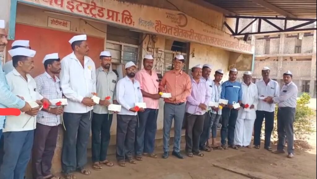 हलकर्णी (ता. चंदगड) येथील अथर्व-दौलत साखर कारखाना यंदाच्या २०२५-२६ च्या गळीत हंगामासाठी सज्ज झाला असून २०२५-२६ च्या तोडणी वाहतुक कराराचे ऍडव्हान्स अडव्हान्स चेक वाटप कार्यक्रम कारखाना कार्यस्थळावर संपन्न झाला. यंदा ७ लाख मी. टन गाळपाचे उद्धिष्ट असून अद्यावत वाहतूक यंत्रणाही सज्ज आहे. आज वाहतुकीसाठीचे धनादेश वाटप प्रसंगी कारखान्याचे चेअरमन मानसिंग खोराटे, मुख्य कार्यकारी अधिकारी विजय मराठे, संचालक विजय पाटील, मुख्य शेती अधिकारी युवराज पाटील, लेबर ऑफिसर अश्रू लाड, तसेच इतर मान्यवर व कर्मचारी मोठ्या संख्येने उपस्थित होते.