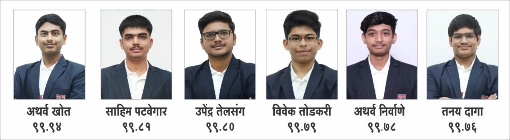 संस्थेच्या सहिम पटवेगार (९९.८१) उपेंद्र तेलसंग (९९.८०) विवेक तोडकरी (९९.७९) अथर्व निर्वाणे (९९.७८), तनय दागा (९९.७६) पर्सेटाईल गुण मिळवून विद्यार्थ्यानी उल्लेखनीय कामगिरी केली . सहिम पटवेगार या विद्यार्थ्याला फिजिक्स या विषयामध्ये १०० पर्सेटाईल गुण मिळाले.