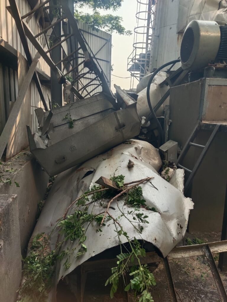 चिपरी येथे सुरू असलेल्या घोडावत कन्झ्युमर लि. गुळ प्रकल्पाचे धुराडे 17 मार्च रोजी रात्री साडेनऊच्या दरम्यान सोसाट्याच्या वाऱ्यामुळे कोसळले. यामध्ये कोणतीही जीवित हानी झाली नाही.