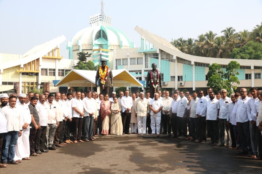 कोल्हापूर जिल्ह्यातील सहकार क्षेत्राचे शिल्पकार शिरोळ तालुक्याचे भाग्यविधाते आणि श्री दत्त शेतकरी सहकारी साखर कारखान्याचे संस्थापक संचालक व माजी चेअरमन,माजी आमदार स्व. डॉ. आप्पासाहेब उर्फ सारे पाटील साहेब यांची पुण्यतिथी श्री दत्त साखर कारखान्याच्या मुख्य कार्यालयीन इमारती समोर उभारण्यात आलेल्या पूर्णकृती पुतळ्यास विनम्र अभिवादन करून साजरी करण्यात आली. याप्रसंगी कारखान्याचे मार्गदर्शक संचालक उद्यान पंडित गणपतराव आप्पासाहेब पाटील यांनी स्व. सा.रे. पाटील यांच्या पूर्णकृती पुतळ्यास पुष्पहार अर्पण केला. तसेच स्व. दत्ताजीराव कदम अण्णा यांच्या पुतळ्यास चेअरमन रघुनाथ देवगोंडा पाटील यांनी पुष्पहार अर्पण केला. त्याचप्रमाणे स्व. दिनकररावजी यादव यांच्या पूर्णाकृती पुतळ्यास संचालक रणजीत अशोक कदम व स्व. विश्वासराव घोरपडे सरकार यांच्या पूर्णकृती पुतळ्यास व्हाईस चेअरमन शरदचंद्र विश्वनाथ पाठक यांनी पुष्पहार अर्पण करून अभिवादन केले. तसेच उपस्थित मान्यवरांनी पुष्पहार अर्पण करून अभिवादन केले यावेळी उपस्थित सर्व संचालक व इतर मान्यवरांनी पुष्पकमल अर्पण करून अभिवादन केले.