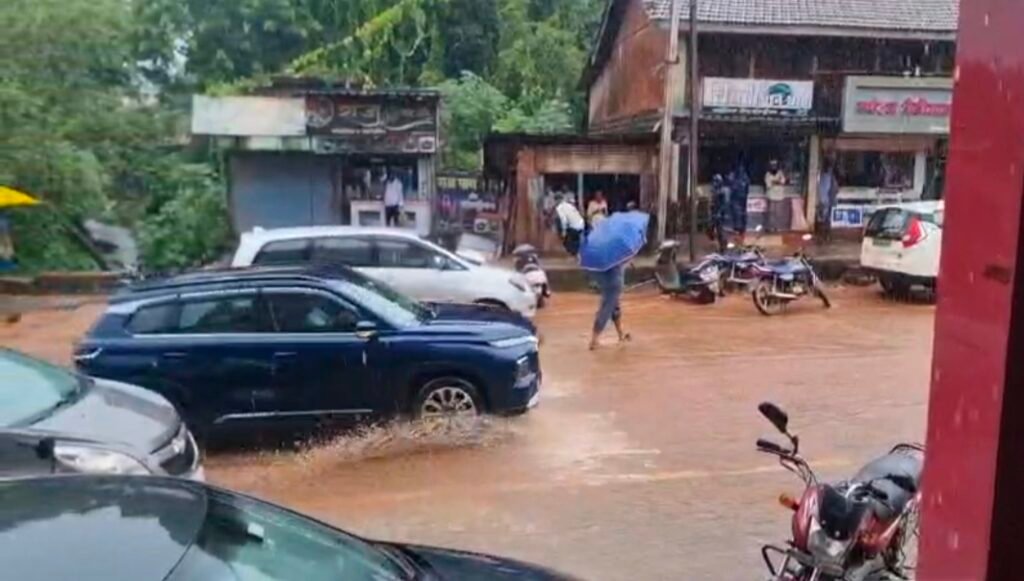 संकेश्वर बांदा महामार्ग झाला परंतु आजरेकरांच्या समस्या मात्र तशाच राहिल्या आहेत. वाहतुकीची समस्या, रस्त्यावर पाणी या समस्या आहेतच. हे दृश्य आहे छत्रपती संभाजी चौक आजरा येथीलआहे. गेल्या दोन महिन्यांपासून आजऱ्यात पावसाचा कहर सुरूच आहे. पाऊस काही थांबेना समस्या काही सुटेना अशीच एकूण अवस्था झाली आहे. भारत नगरपासून वरून येणारे पाणी थेट व्यंकटराव हायस्कुल, तहसील कार्यालय असे थेट रस्त्यावरून पाणी खाली छत्रपती संभाजी चौकापर्यंत येत आहे. रस्ता खाली गटारी वर असे ढिसाळ नियोजन झाल्यामुळे गटारीतूनपाणी न जाता रस्त्यावर येत आहे. शेवटी तेथील काही युवकांनी दुर्गा स्वीट होम समोर तीन चार ठीकणी गटारीला होल पाडून पाण्याचा काही प्रमाणात निचरा केला. तरीसुद्धा रस्त्यावर पाणी साचले. वाहन धारक, मोटसायकल स्वार, पदचारी आदिना याचा त्रास होत आहे. गटारीतून पाणी काढण्यासाठी प्रशासनाने योग्य उपाय आखावेत अशी नागरिकांतून मागणी होताना दिसत आहे.