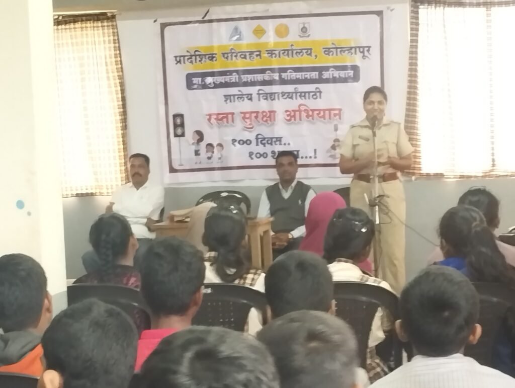 येथील दि न्यू इंग्लिश स्कूलमध्ये प्रादेशिक परिवहन कार्यालयाच्यावतीने अत्यंत प्रभावी आणि माहितीपूर्ण असे रस्ता सुरक्षा जनजागृती अभियान संपन्न झाले. प्रमुख मार्गदर्शक अधिकारी प्रिया पाटील यांनी विद्यार्थ्यांना अपघाताचे प्रमाण कमी करण्यासाठी आवश्यक असलेल्या वाहतूक नियमांची सखोल माहिती दिली. त्यांनी सिग्नलचे पालन, वाहनाच्या वेगावर नियंत्रण, हेल्मेट आणि सीटबेल्टचा वापर, तसेच वाहन चालविताना आवश्यक काळजी घेण्याबाबत विद्यार्थ्यांशी संवाद साधला. विद्यार्थ्यांनी विचारलेल्या प्रश्नांची त्यांनी शास्त्रशुद्ध पद्धतीने उत्तरे दिली.