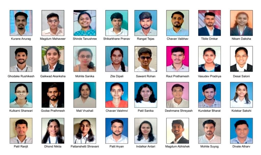 अनुराग कुरणे, महावीर मगदूम, तनुश्री शिंदे, प्रणव शिखरखाने,ऋषिकेश घोडके, आकांक्षा गायकवाड, सानिका मोहिते, दिपाली झिटे,शर्वरी कुलकर्णी, प्रथमेश गोडसे, वृषाली माळी, वैष्णवी चव्हाण, रणजीत पाटील, निकिता धोंड, श्रावणी पट्टणशेट्टी,आर्यन पाटील, तेजस रंगत, वैभव चव्हाण, ओमकार तिबिले, दक्षा निकम, रोहन सावंत, प्रथमेश राऊत, प्रज्ञा वासुदेव, सलोनी देसाई, सानिका पाटील, श्रेयश देशमाने, भारत कुंडेकर,साक्षी कोळेकर, अंतरी इंदलकर, अभिषेक मगदूम, सुयोग मोहिते, अथर्व दिवटे असे विधार्थी आहेत.